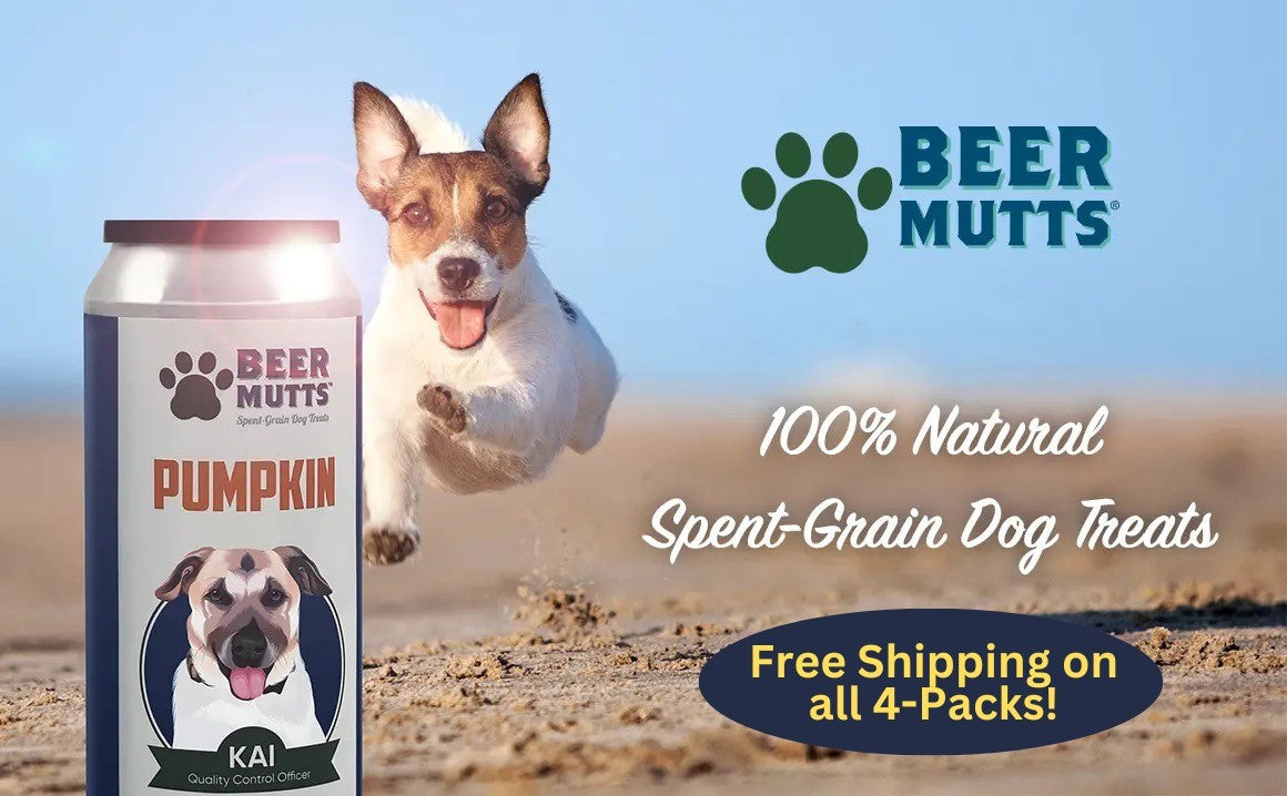 process — a good source of protein & vitamins for dogs. Beer Mutts comes in 3 flavors: Peanut Butter, Pumpkin and Pizza, packaged